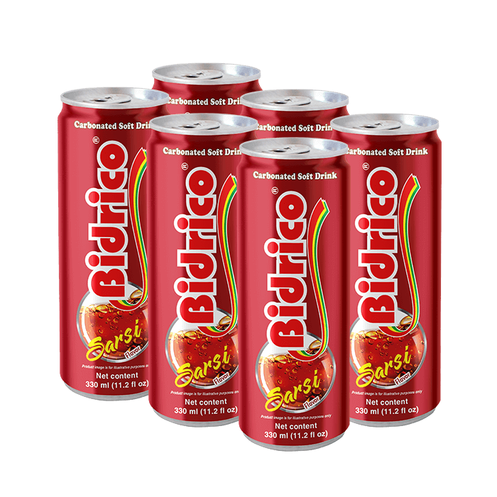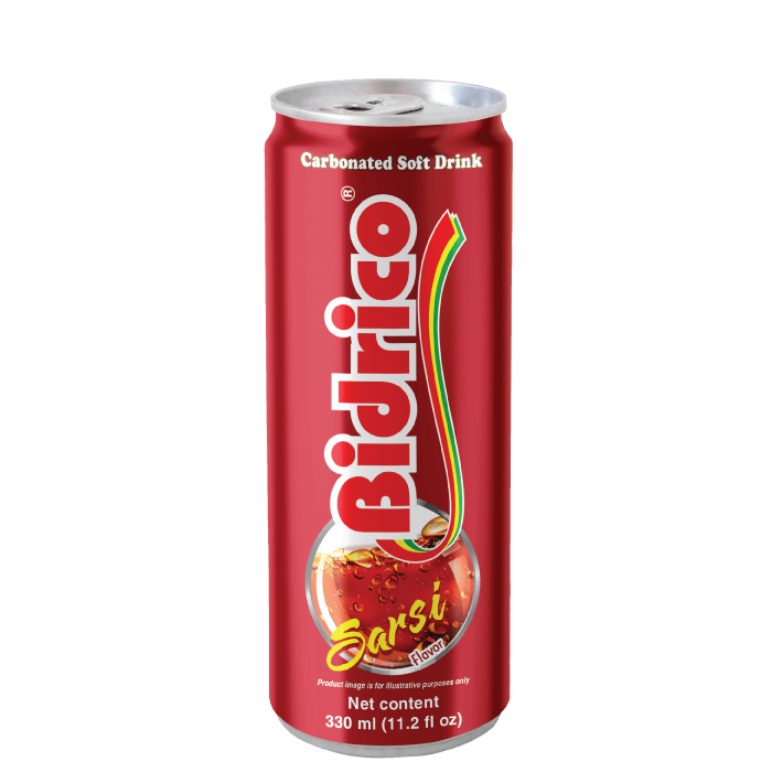 Other Bidrico carbonated soft drinks 330ml can: Orange, cream soda, cola, sarsi.
