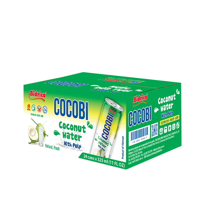 ContactCocobi coconut water with pulp 325ml can is the perfect combination of fresh coconut water and soft, chewy, delicious coconut pulp. Extracted from the freshest coconuts, Cocobi brings you cans of pure coconut water, which provide the nutrients and natural flavor of coconut pulp without adding any preservatives or additives. The product brings you a wonderful, naturally refreshing, delicious and nutritious thirst-quenching experience.
