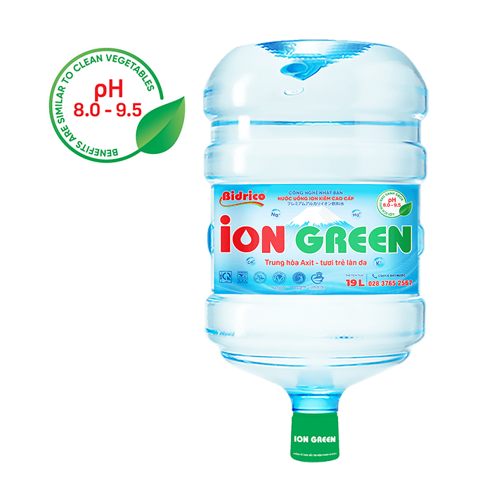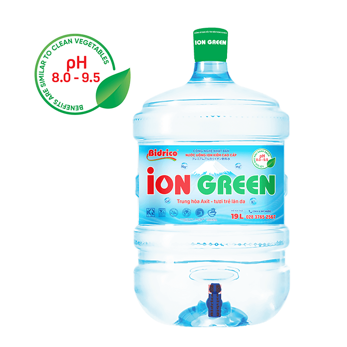 ContactION GREEN premium alkaline ionized drinking water 19l bottle up is created from electrolysis technology, which splits water into ions H+ and OH- and it has natural alkaline with pH from 8.0 – 9.5. The product is manufactured on an automatic, closed lines, integrating modern electrolysis technology from Japan.