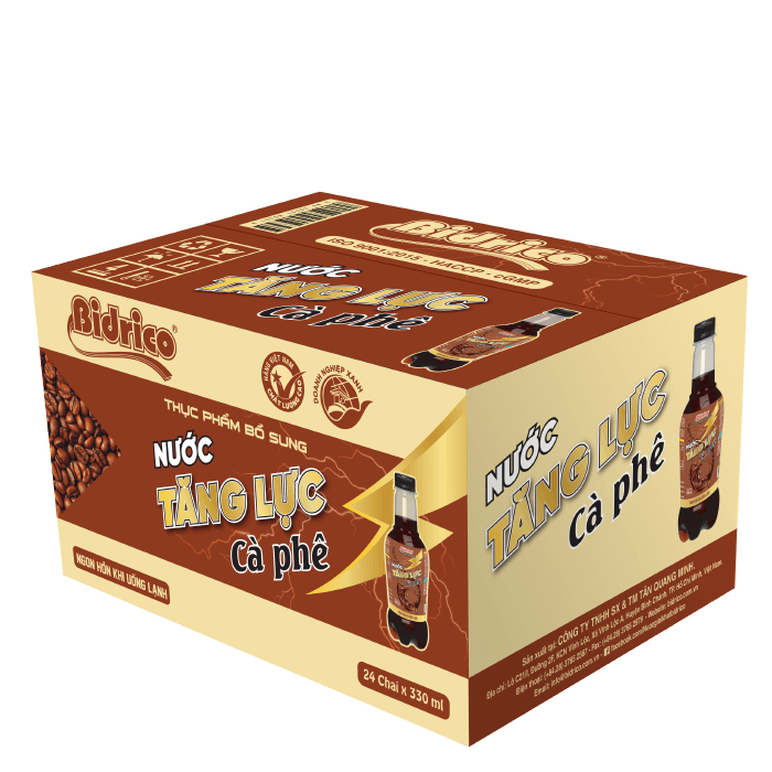 Liên hệNước tăng lực cà phê Bidrico là sự kết hợp hài hoà giữa nước tăng lực và cà phê tự nhiên, tạo nên niềm cảm hứng mạnh mẽ và tươi mới cho người thưởng thức. Không chỉ giữ được trọn vẹn vị đậm đà của cà phê và sảng khoái của nước có gaz mà nước tăng lực cà phê Bidrico đã đánh thức sự tỉnh táo và tiếp thêm nguồn năng lượng cho một ngày dài năng động. Sản phẩm được sản xuất trên dây chuyền khép kín theo công nghệ chiết xuất lạnh và qua nhiều khâu kiểm định từ nguyên liệu đến thành phẩm, đảm bảo an toàn và chất lượng.