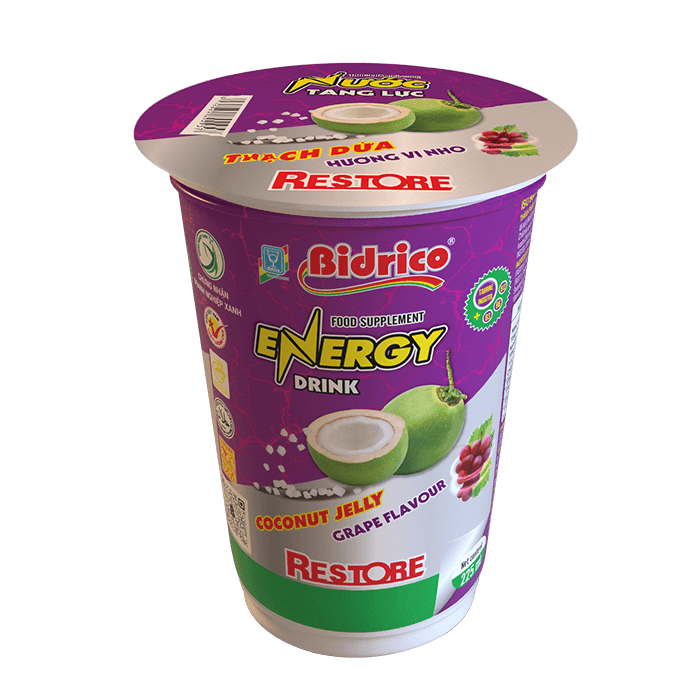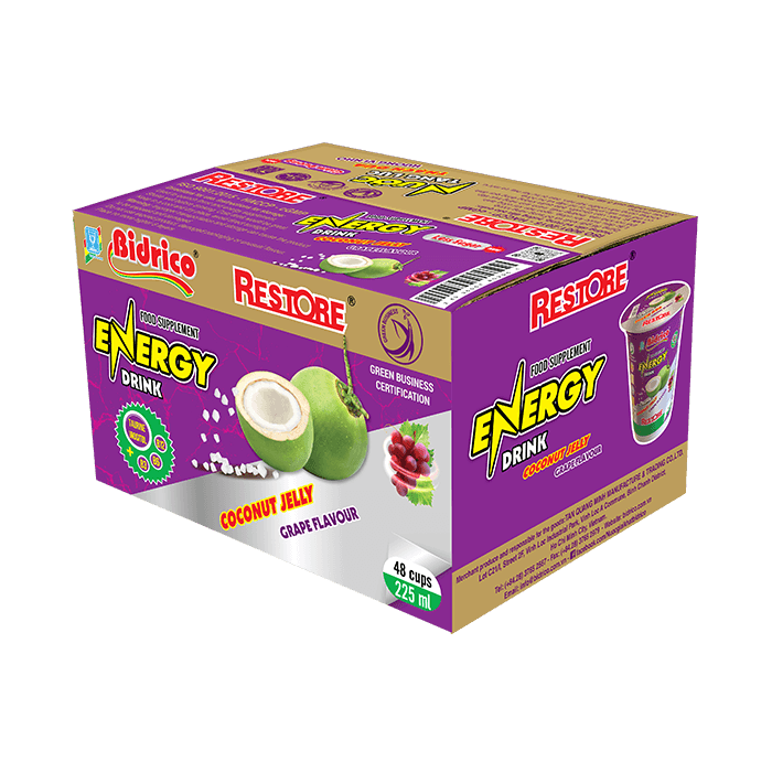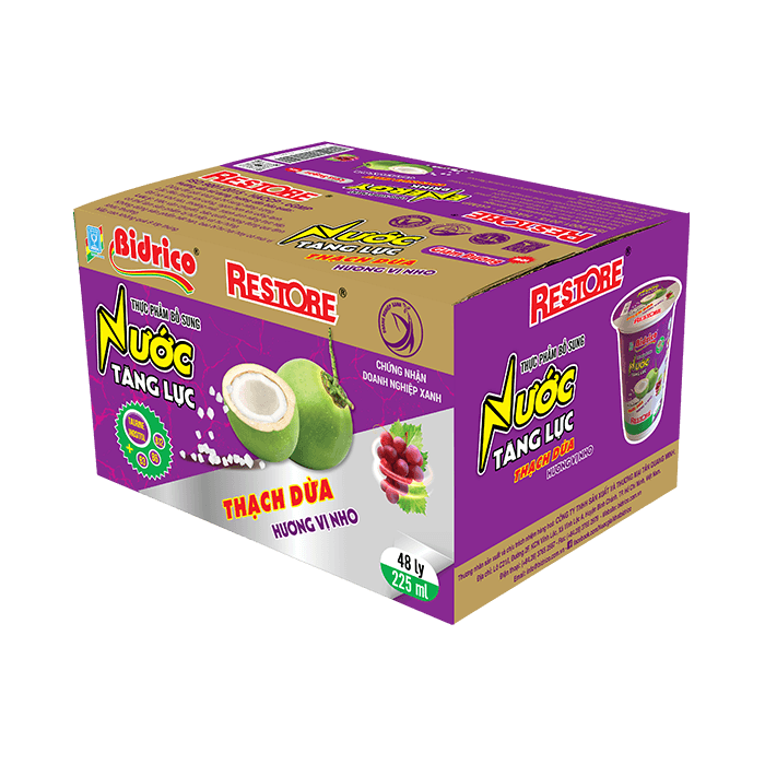 Với thiết kế nhỏ gọn, tiện lợi đựng trong ly 225ml giúp dễ dàng mang theo khi hoạt động ngoài trời. Cùng với hệ thống sản xuất an toàn và vệ sinh, nước tăng lực thạch dừa hương vị nho Restore tự tin mang đến cho khách hàng những trải nghiệm sản phẩm tốt và chất lượng.